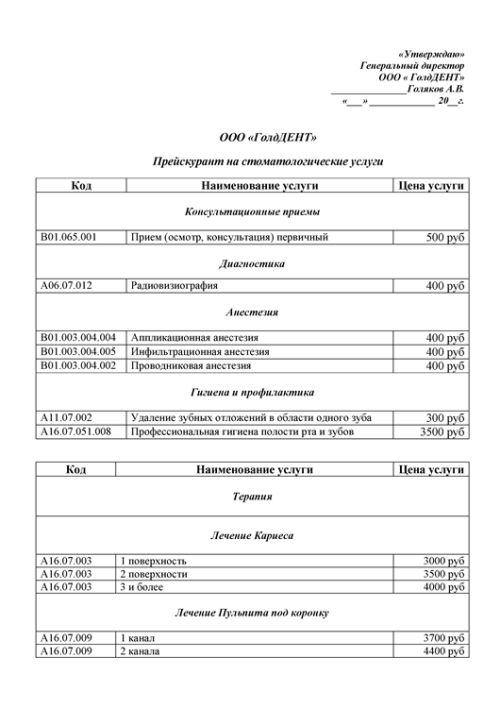 | B01.065.001 | Прием (осмотр, консультация) первичный | 500 |
