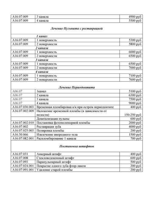 | A16.07.030.003 | Временная пломбировка к/к при остром периодонтите | 400 |