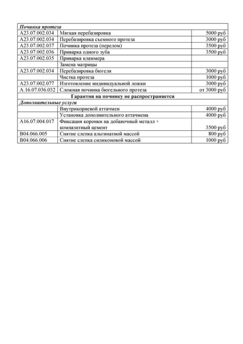 | A23.07.002.037 | Починка протеза (перелом) | 3 500 |